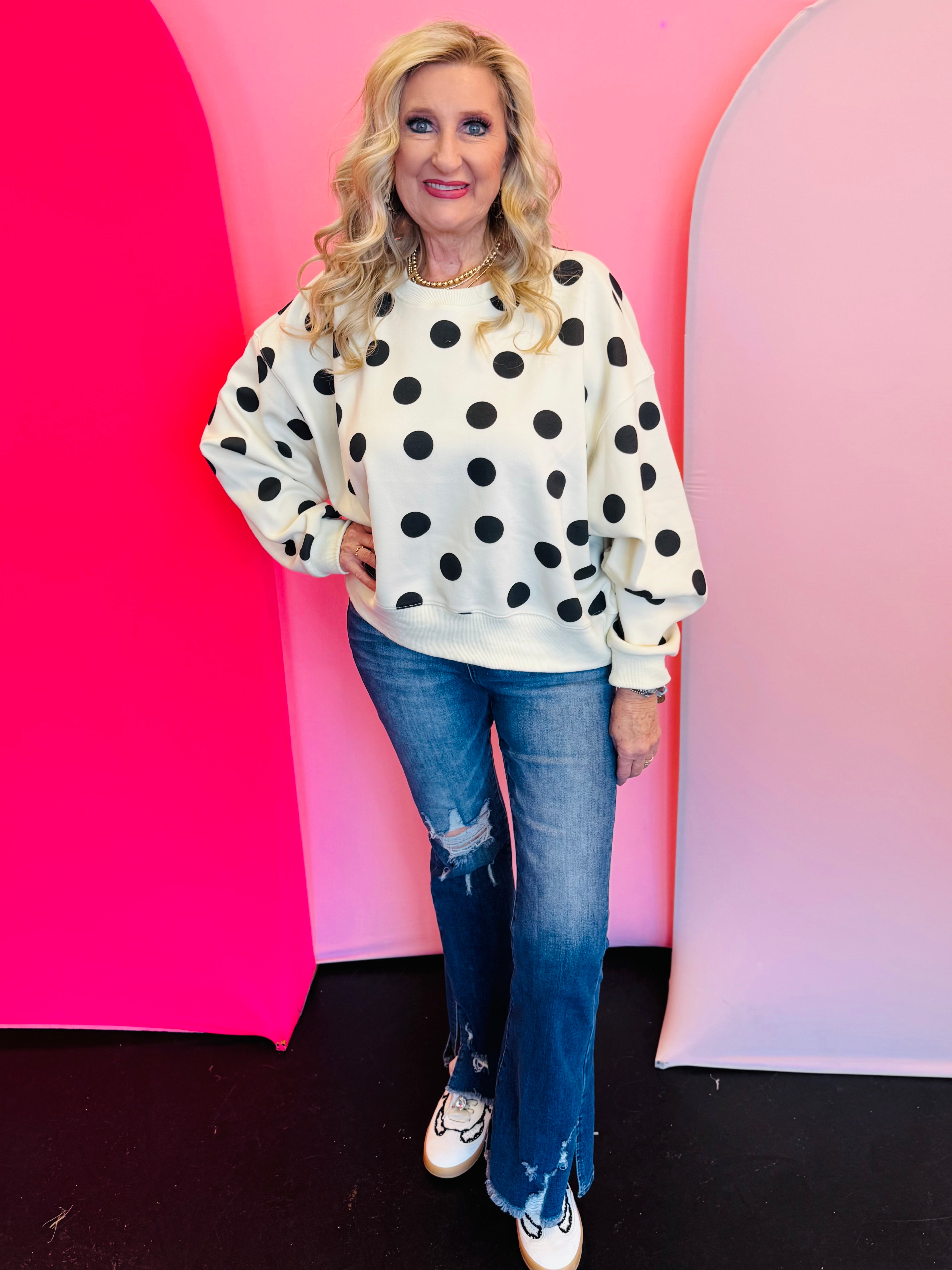 White Polka Dot Crop Sweatshirt