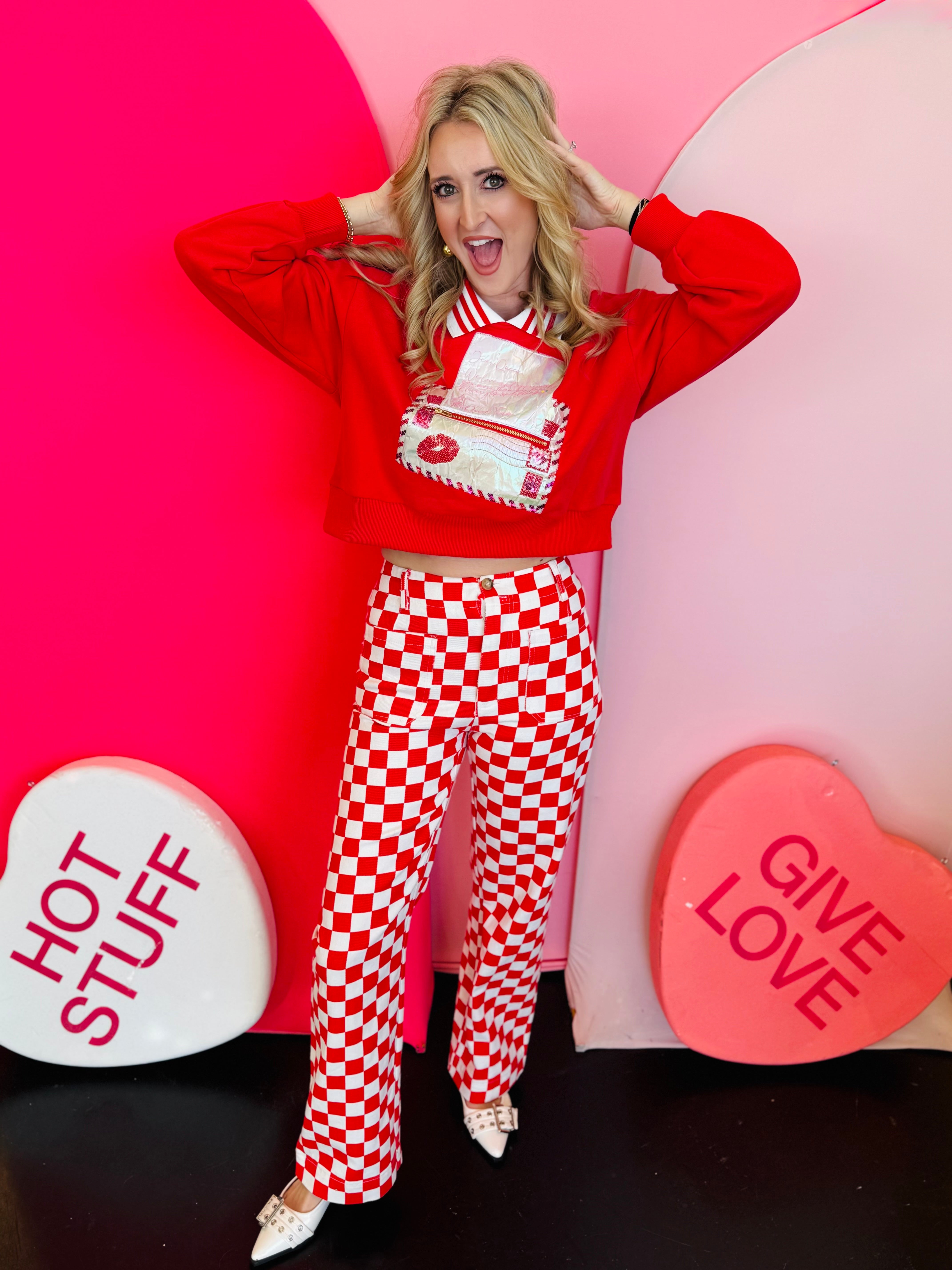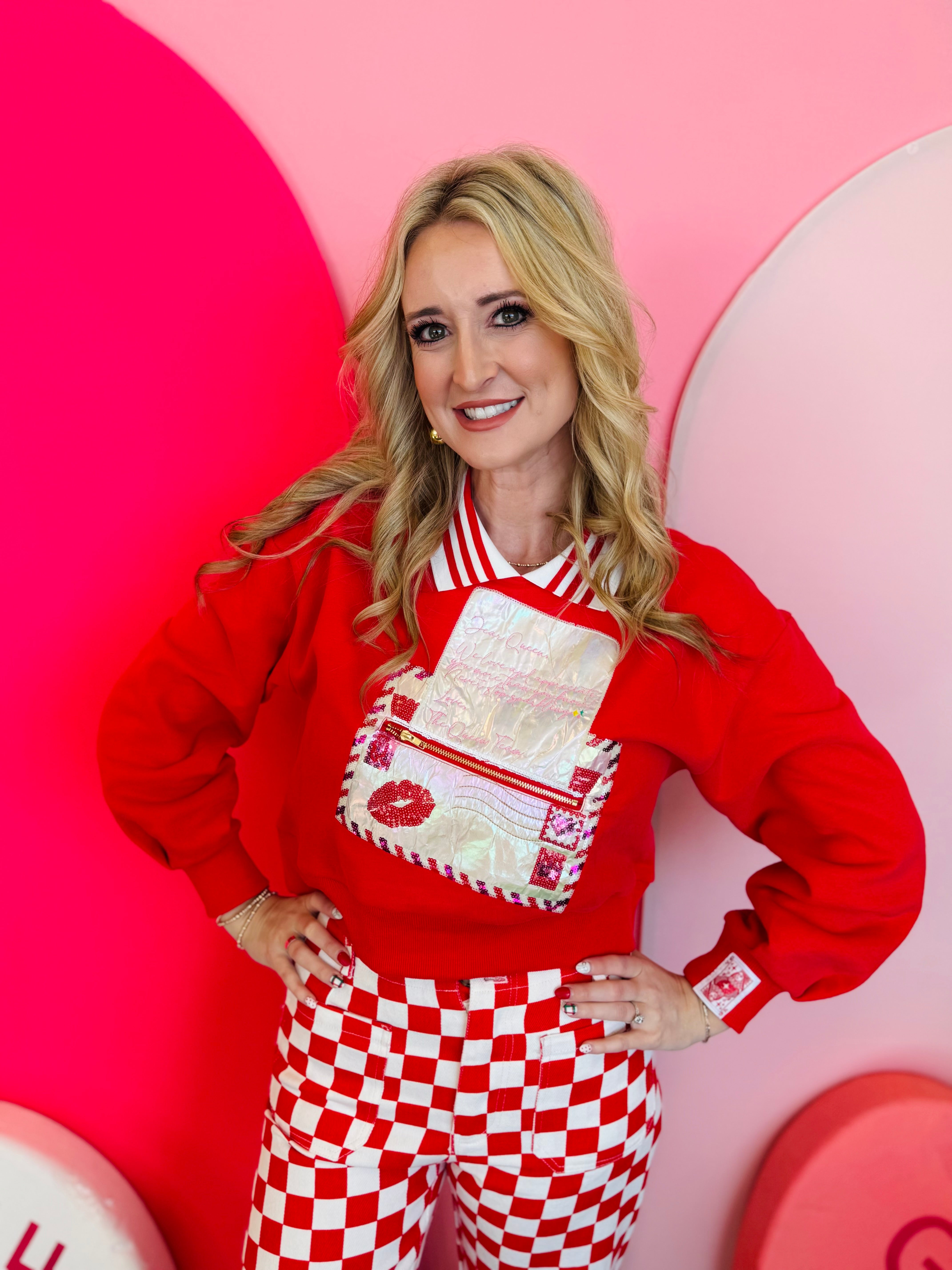 Queen Of Sparkles Red Love Letter With Functioning Zipper Collar Sweatshirt