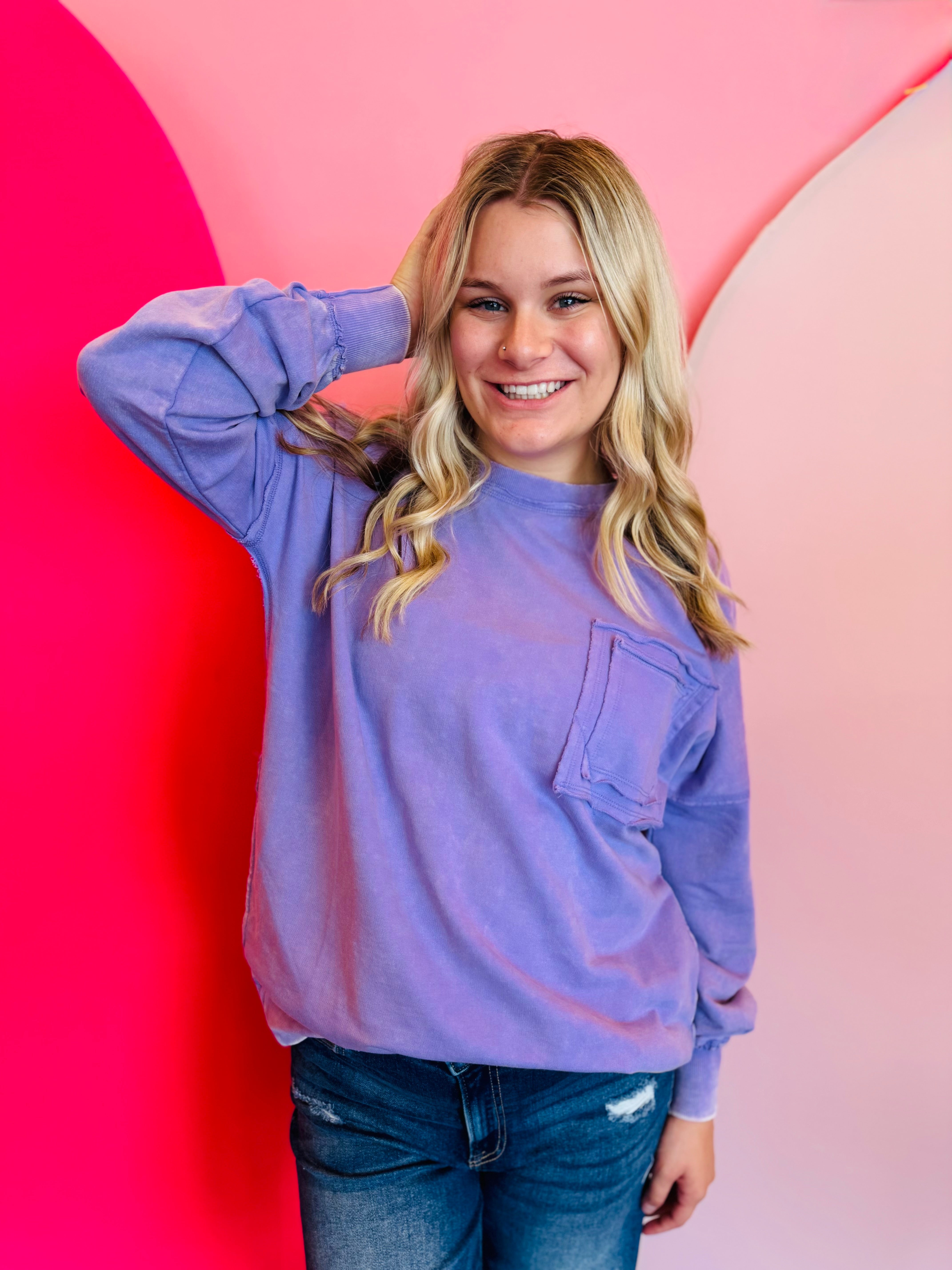 Lavender Pocketed Acid Wash Fleece Sweatshirt
