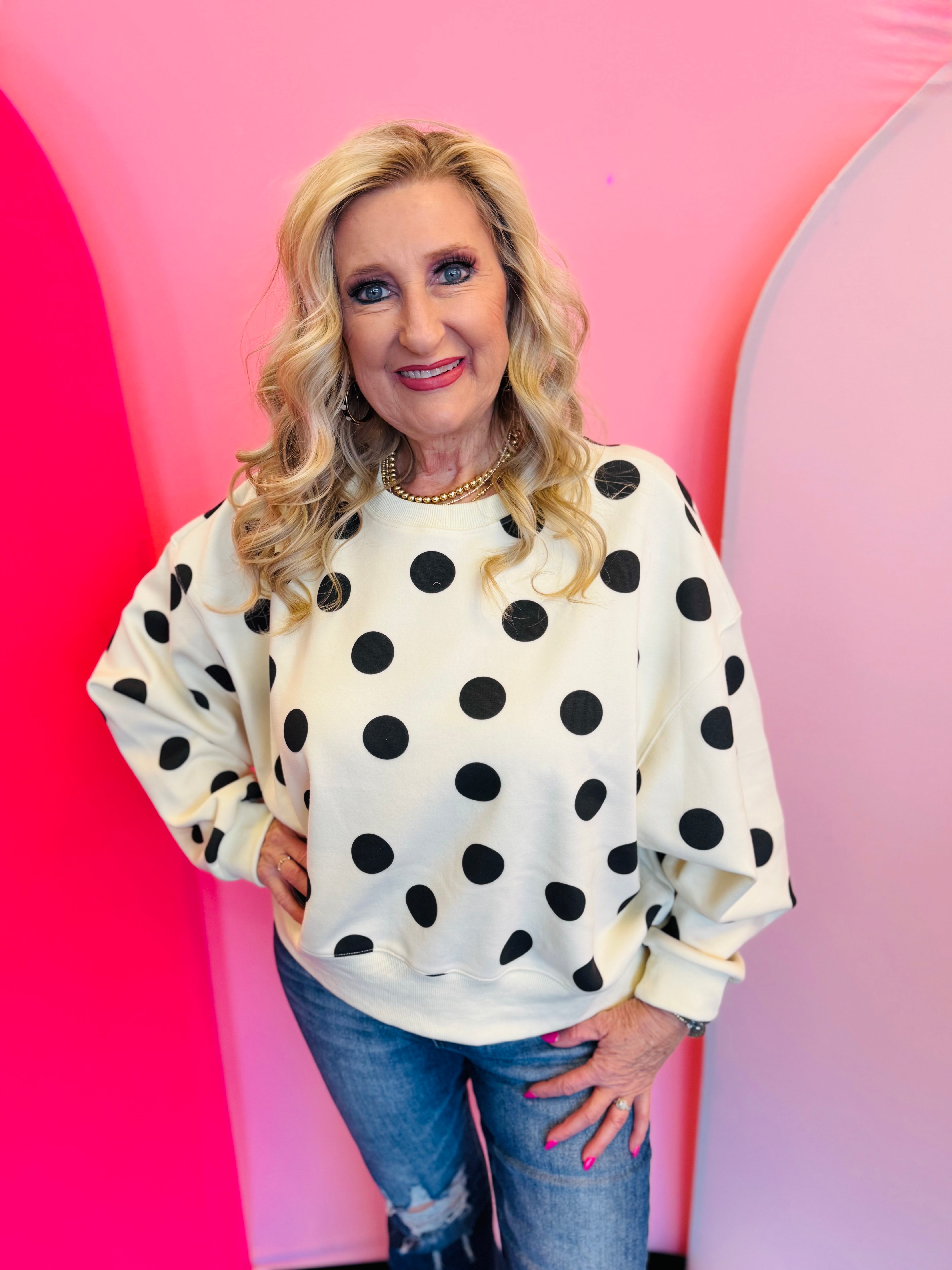 Mia After Dark Polka Dot Printed Pullover