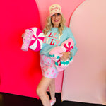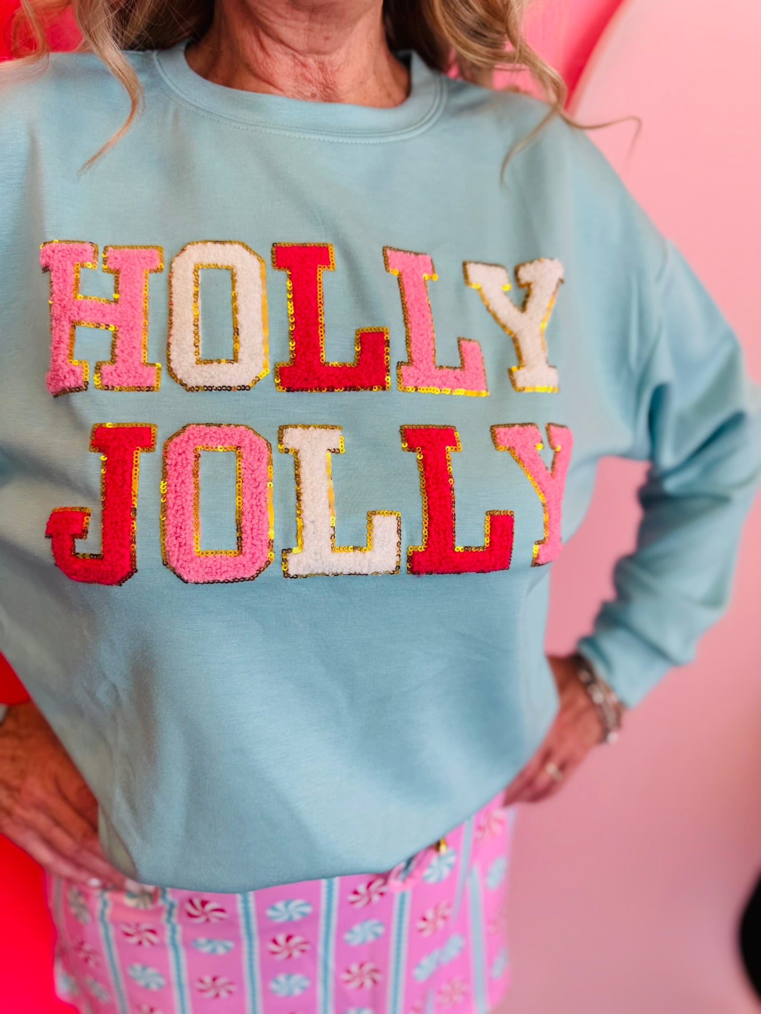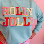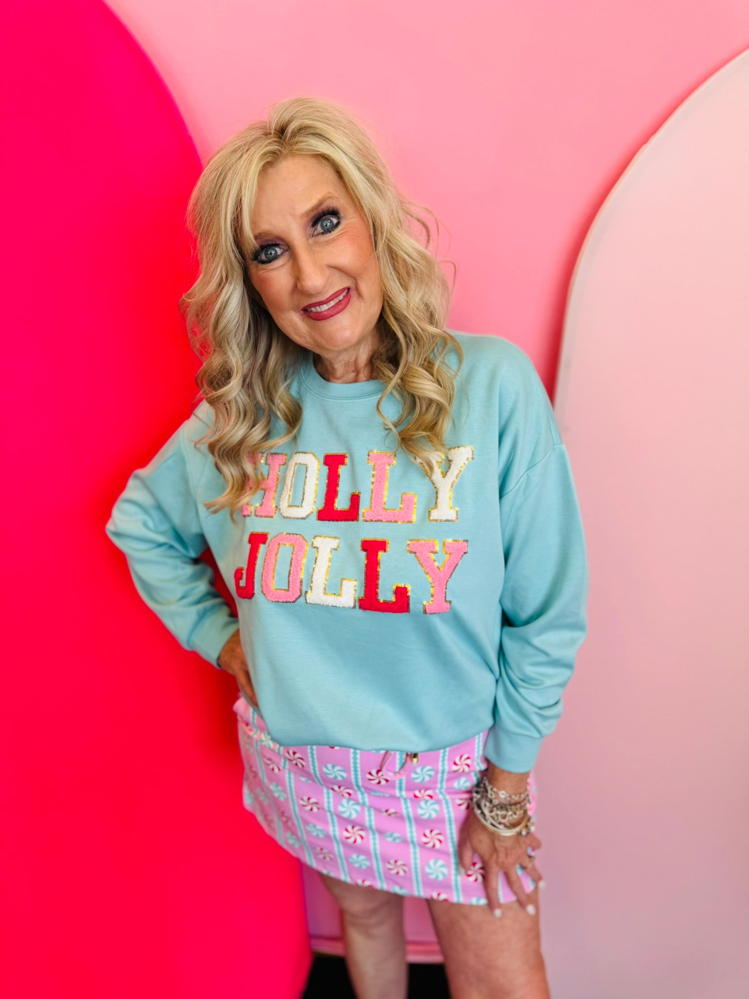 Spread festive cheer in cozy, elevated style with the Holly Jolly Patch Luxe Pullover. Designed in a soft, whimsical light blue shade accented with playful touches of pink and white, this pullover blends comfort and sparkle effortlessly. The chenille “Holly Jolly” patches are trimmed in shimmering gold sequins, creating the perfect mix of charm and holiday glam. Whether you’re lounging at home, decorating the tree, or heading to a cheerful get-together, this Luxe pullover delivers a stylish dose of holiday spirit with a luxurious feel.
