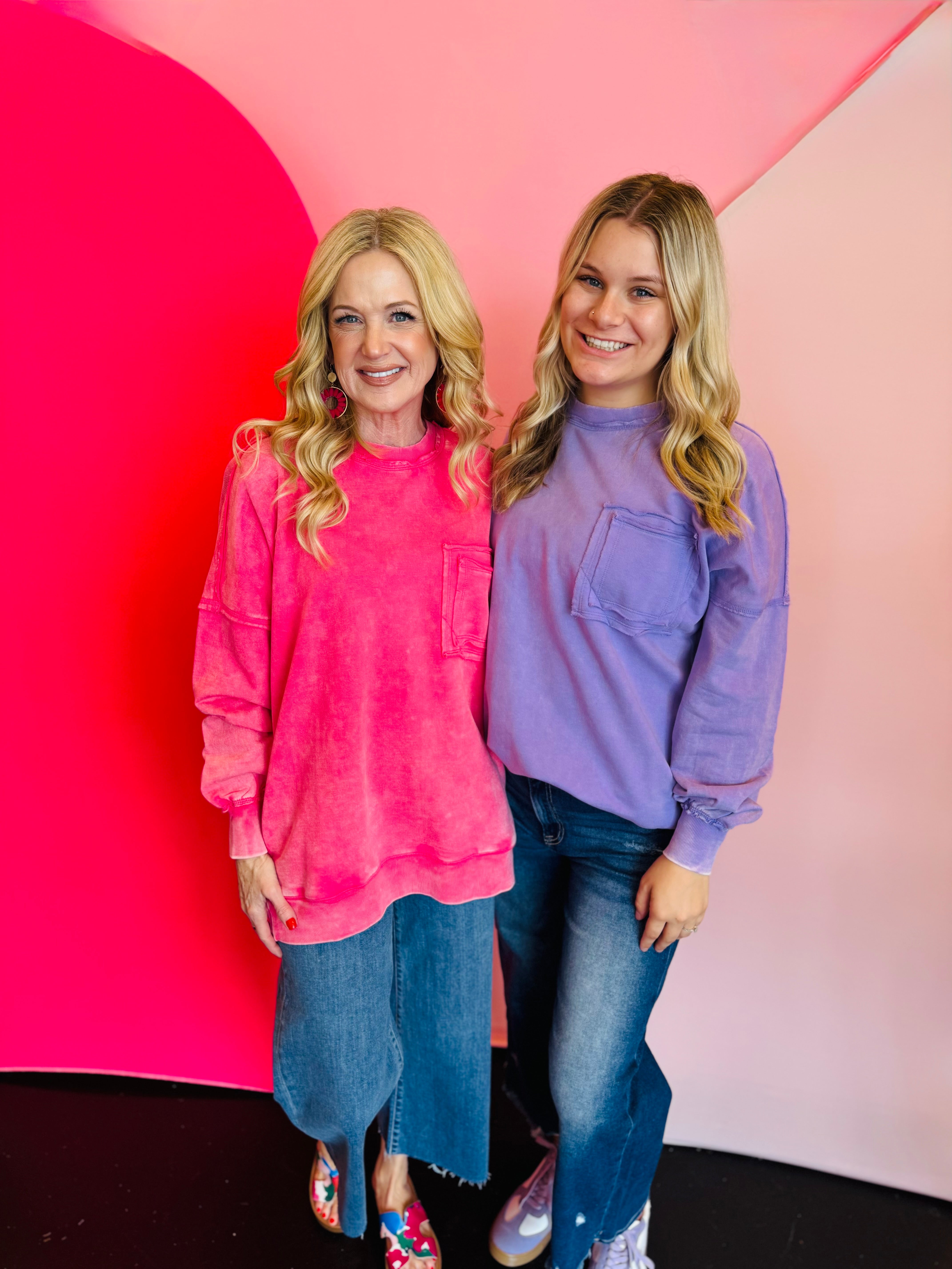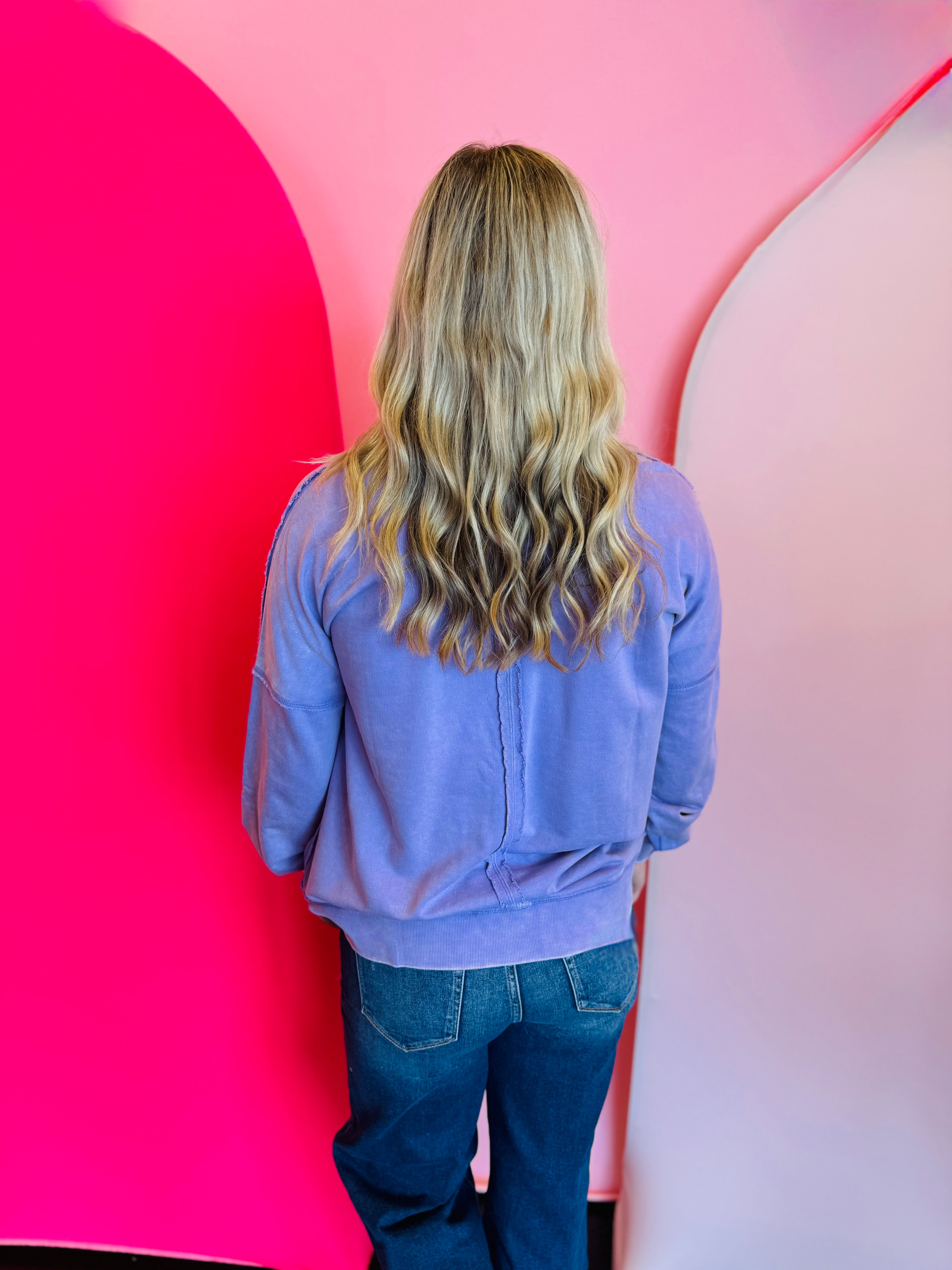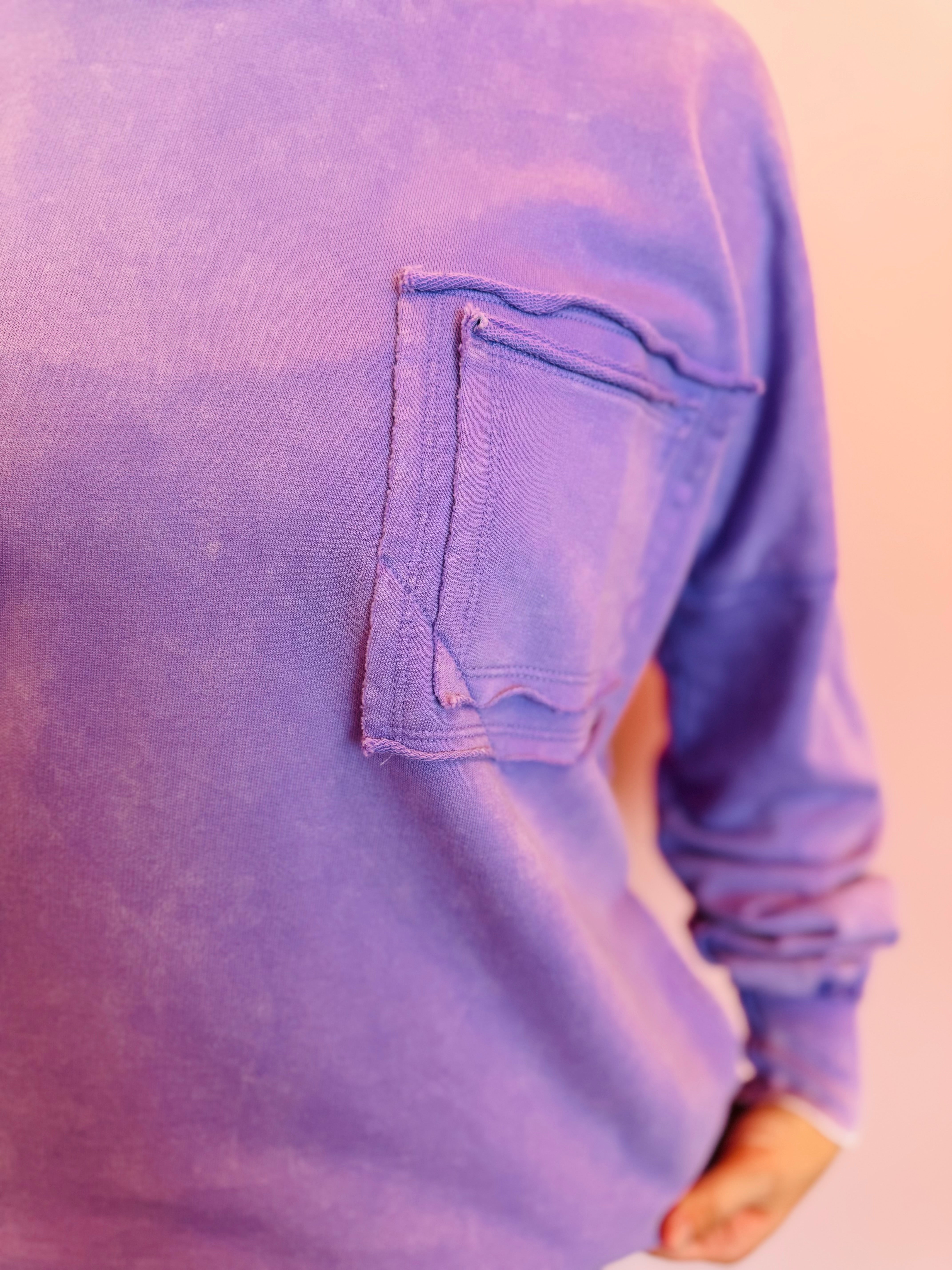 Lavender Pocketed Acid Wash Fleece Sweatshirt