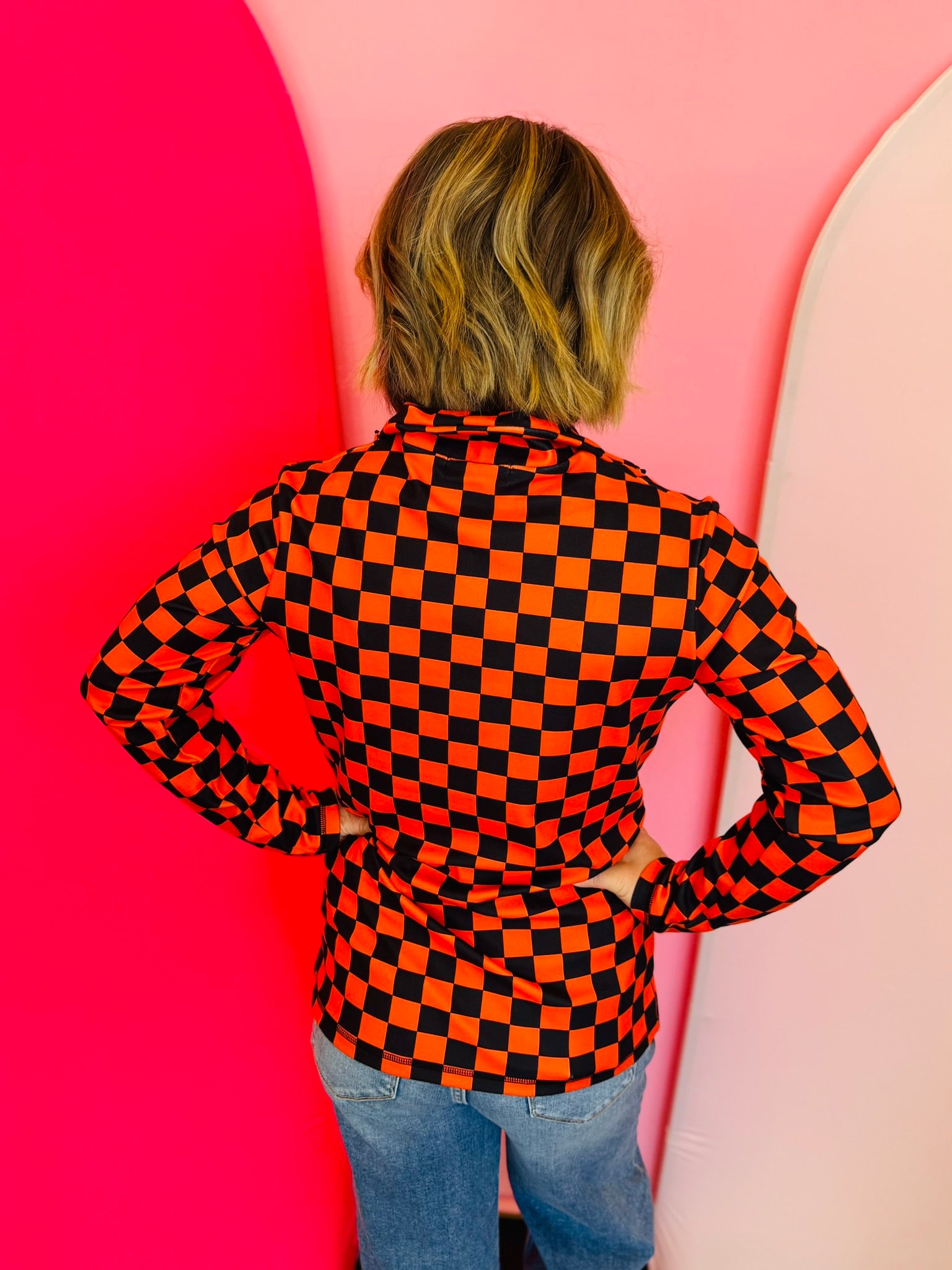 Orange & Black Checkered Pullover