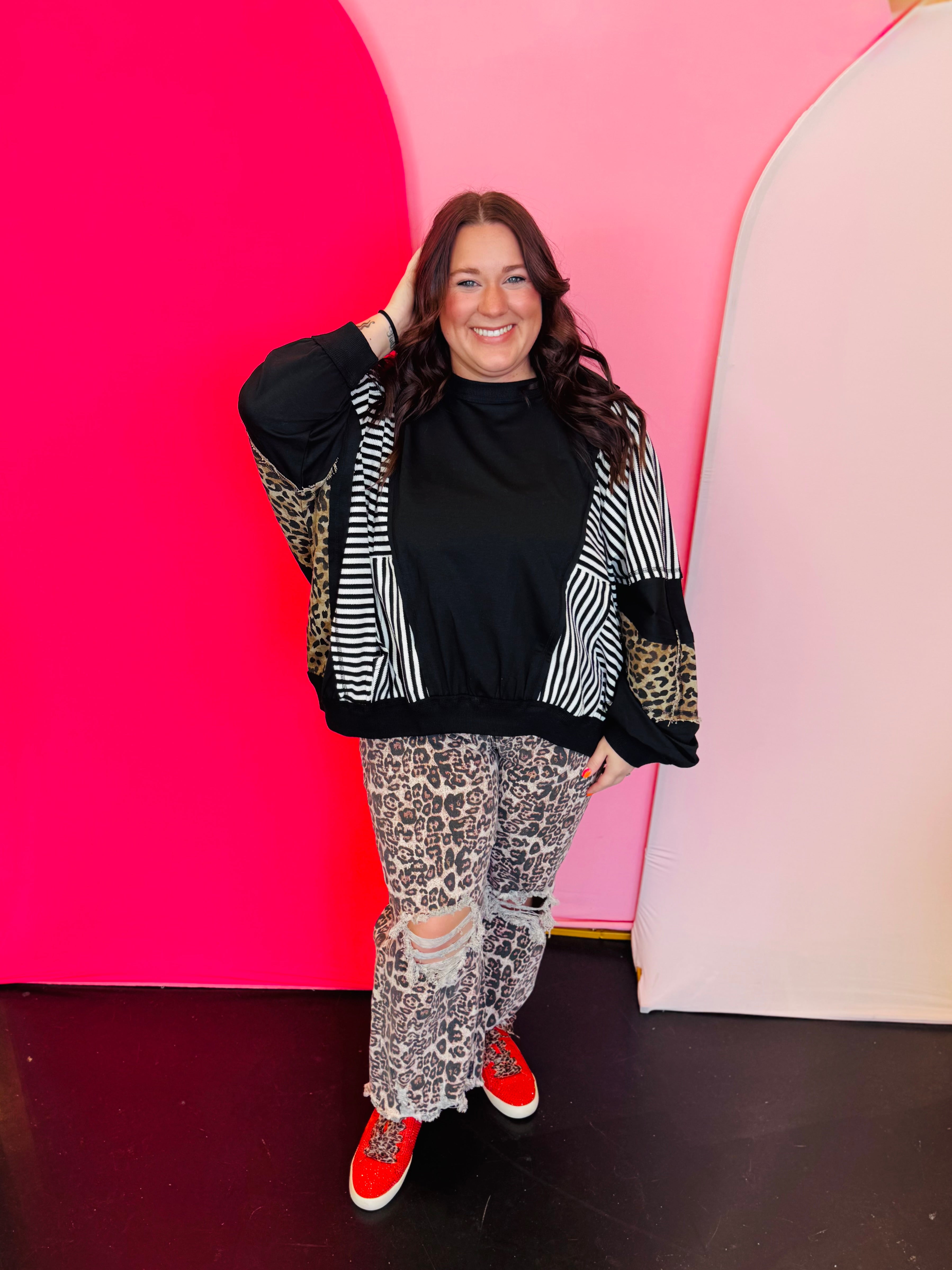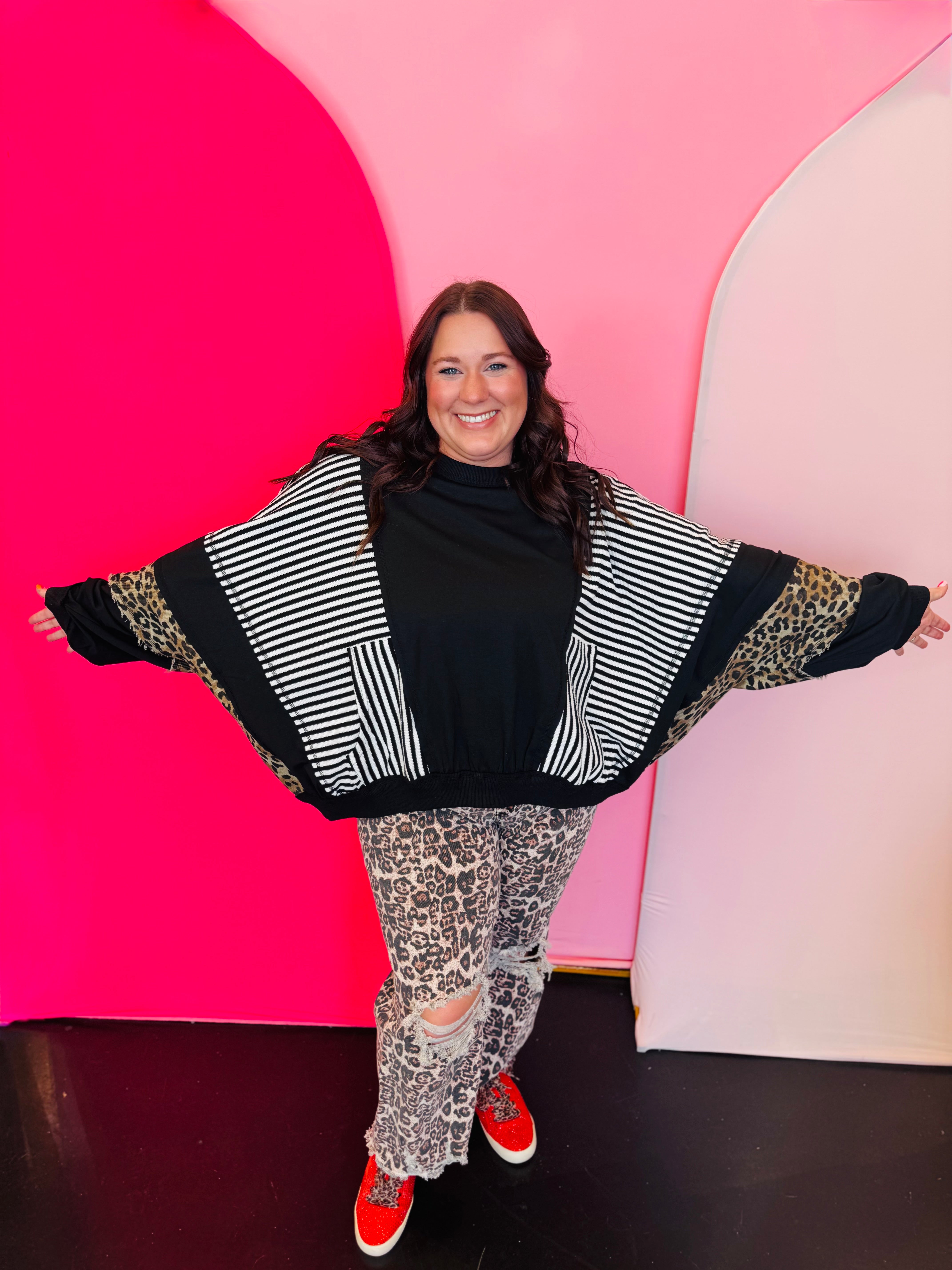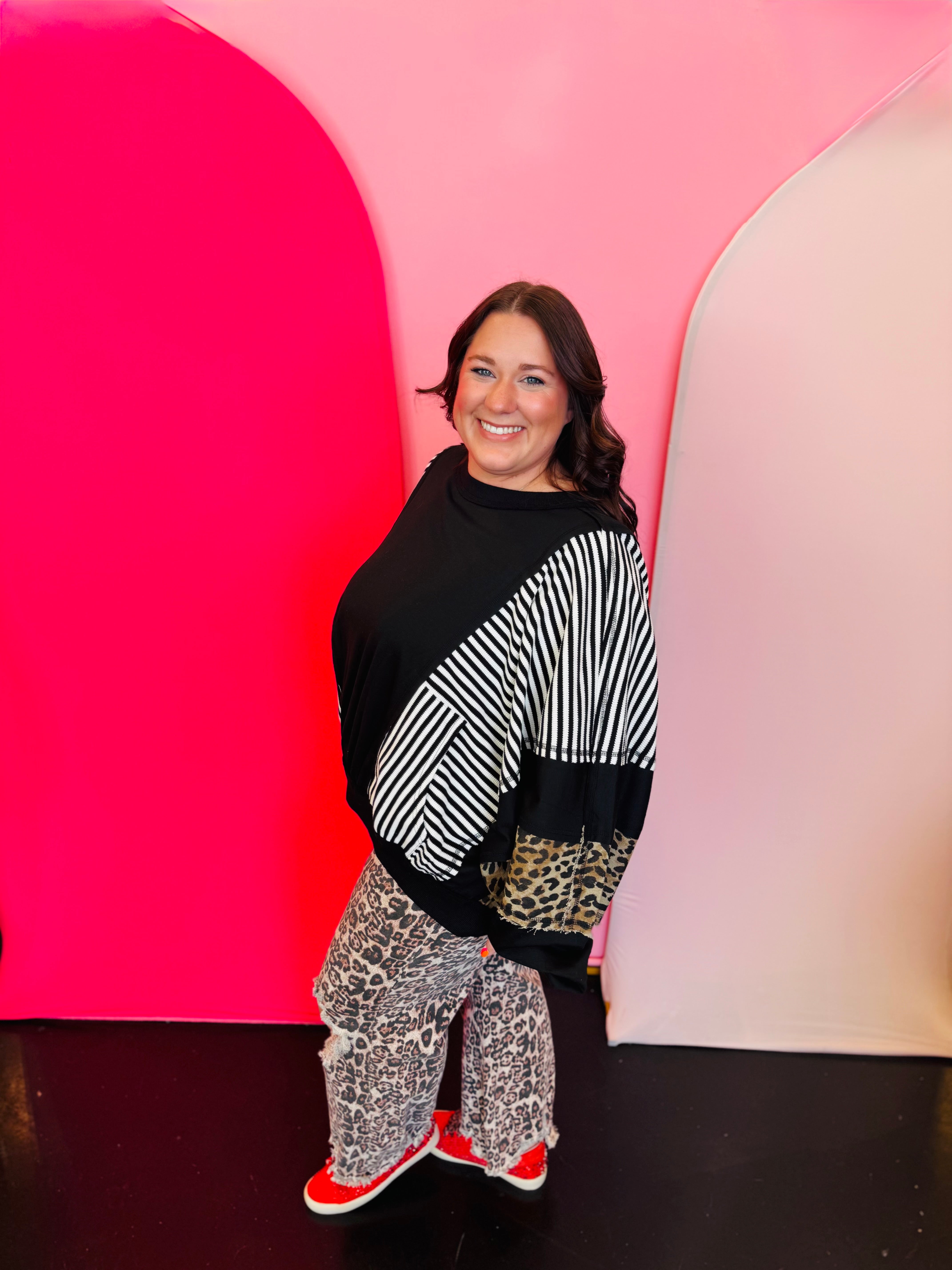 A standout piece for your everyday rotation—the Black Stripe & Leopard Top adds just the right amount of wild to your wardrobe.