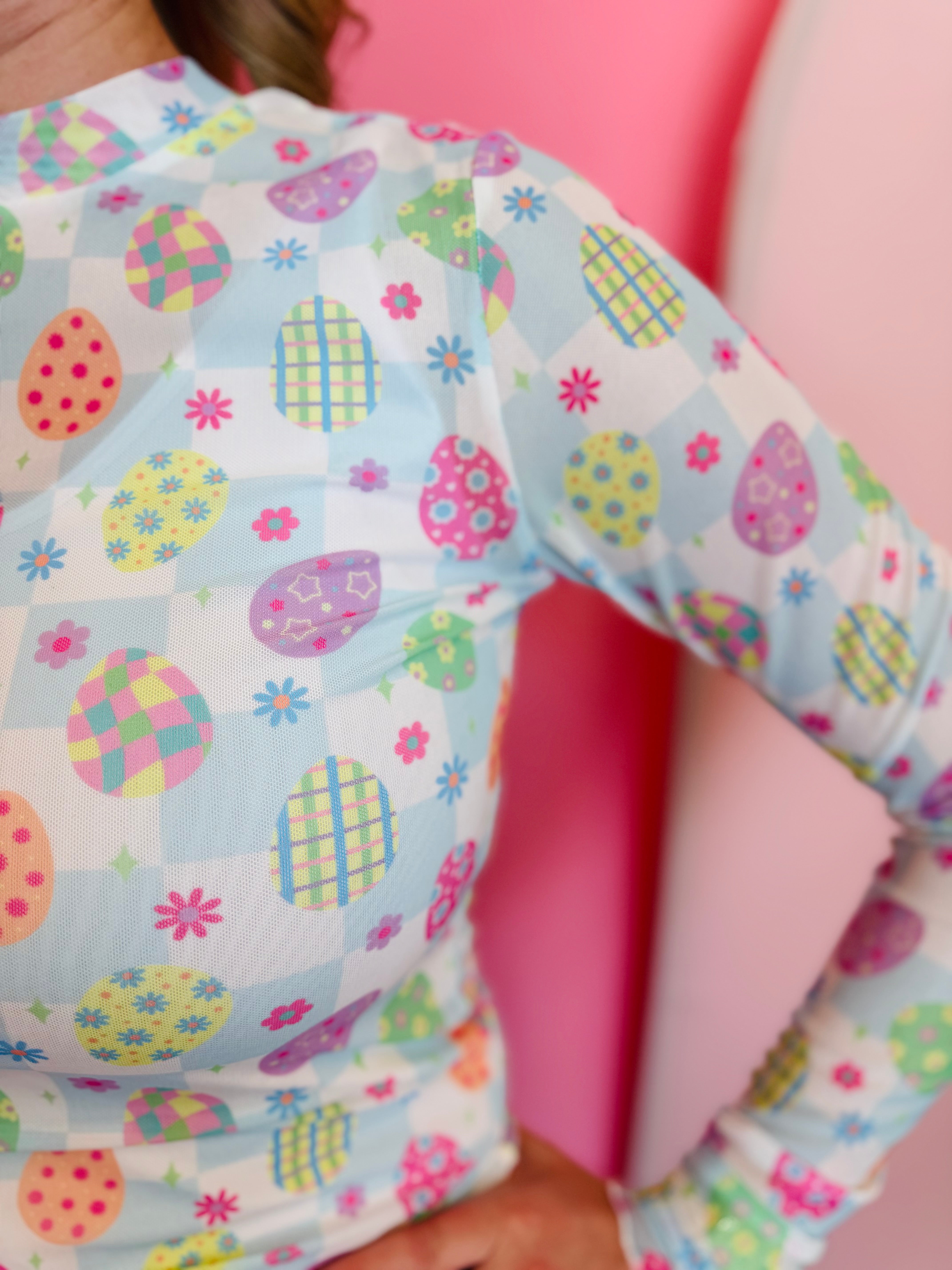 Playful, festive, and effortlessly stylish, the Kate Mesh Top in Egg Hunt is the perfect statement layering piece for spring. Featuring a charming Easter egg print, this top brings a fun seasonal touch while still feeling modern and wearable. The sheer mesh fabric creates a lightweight, breathable feel that’s ideal for layering over camis, bralettes, or tanks, giving you endless styling options.