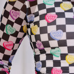 Sheer mesh with checkered + conversation heart print