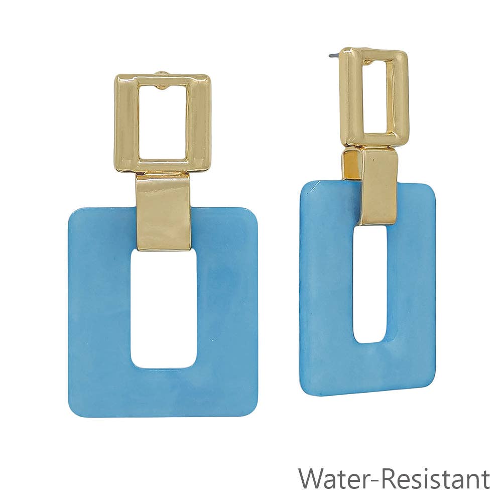 Light Blue Acrylic Gold Square Earrings (Water Resistant)