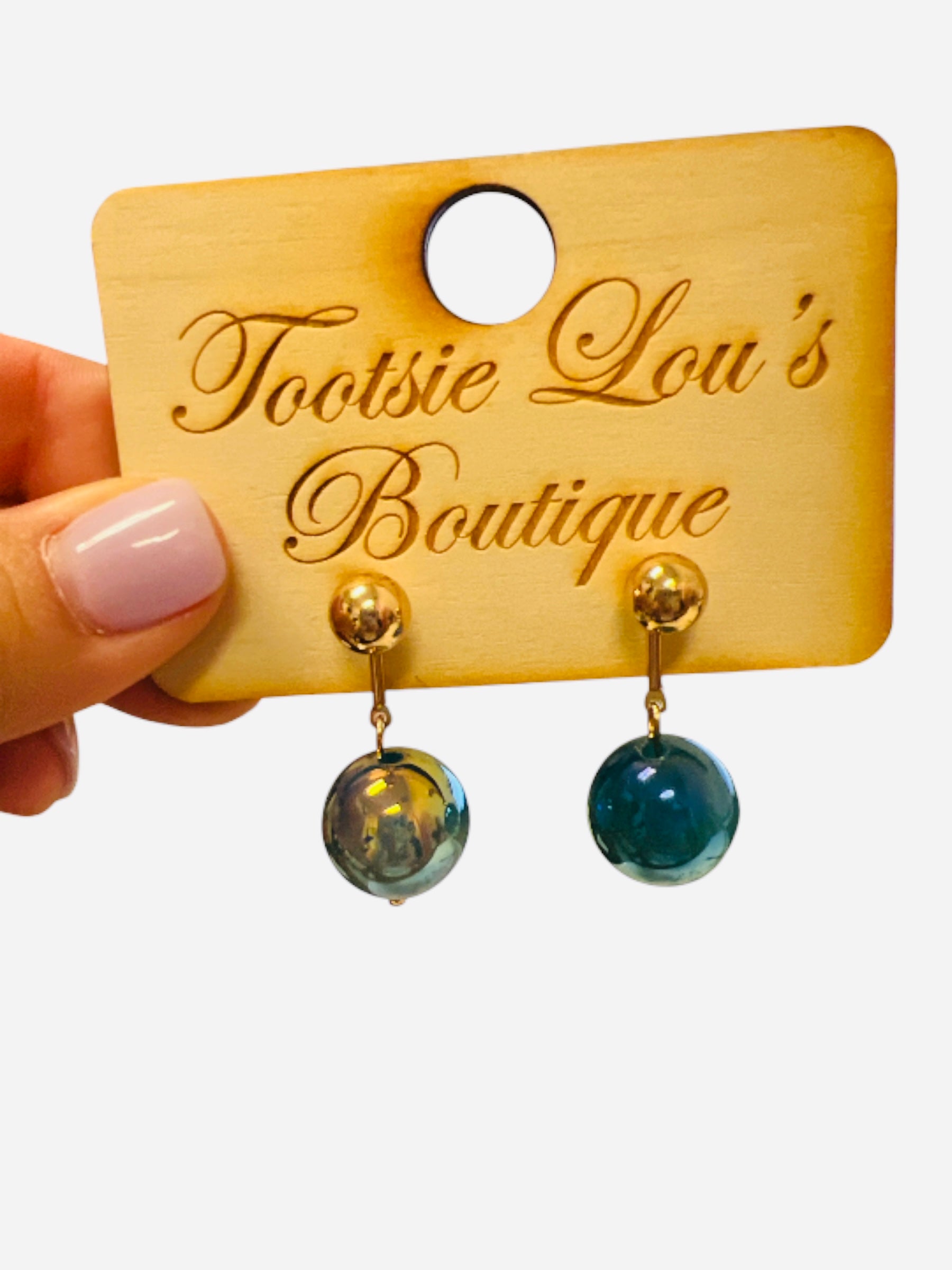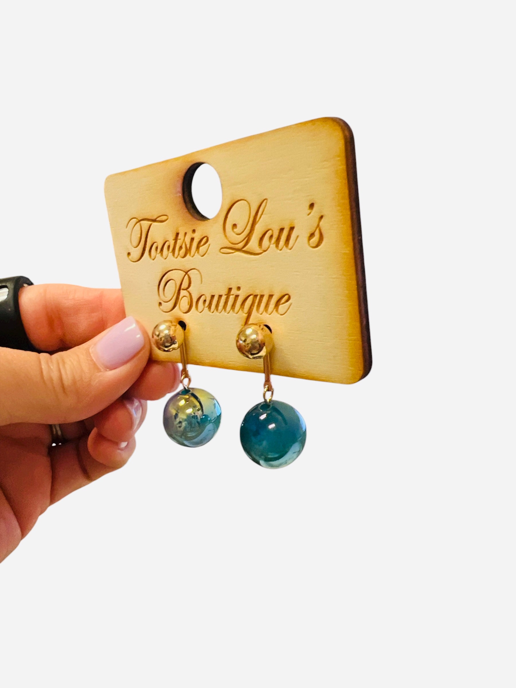 Make a subtle statement with the Ocean Blue Drop Earrings — a water-resistant design that brings coastal elegance to your everyday style. These striking earrings feature ocean blue marbled spheres that dangle delicately from polished gold posts, offering a serene pop of color with a touch of modern sophistication.