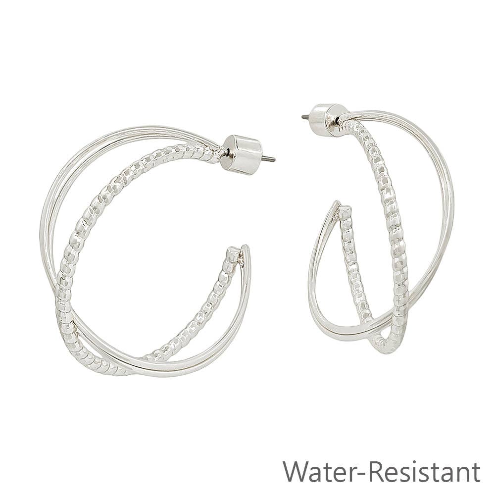 Silver Twisted Hoop Earrings (Water Resistant)