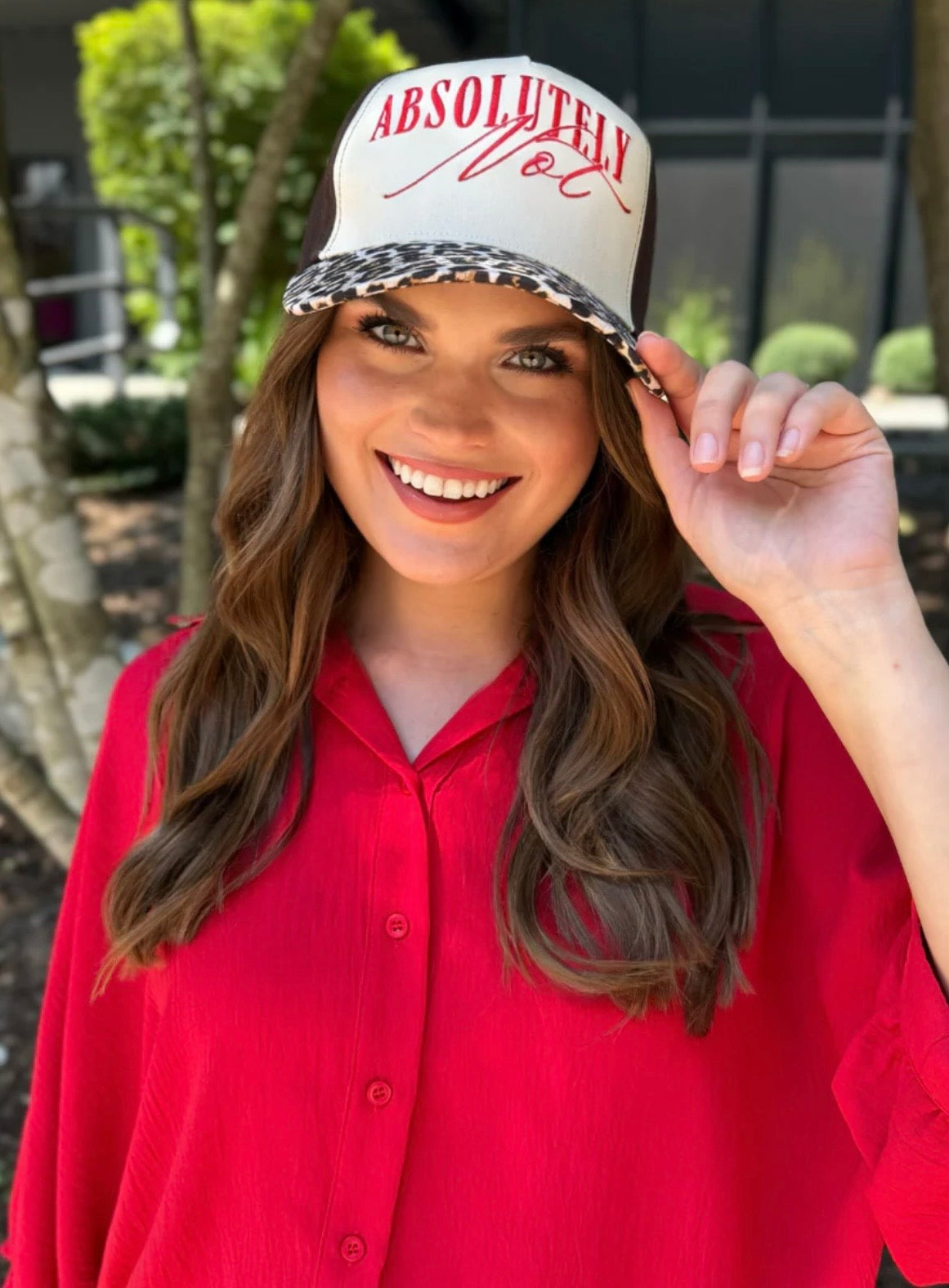 Make a statement in effortless style with the Absolutely Not Hat, a bold blend of sass and sophistication. Designed with a cream and chocolate canvas body and finished with a fierce leopard print bill, this hat adds instant attitude to any outfit. The striking red embroidered “Absolutely Not” lettering makes it clear you’re not here for the nonsense—just confident vibes and standout fashion. Perfect for casual days, coffee runs, or tailgates, this cap brings a playful touch to any look. Its adjustable fit ensures comfort, while its durable construction promises long-lasting wear. Pair it with denim, joggers, or your favorite graphic tee for a signature look that’s both fearless and fun.