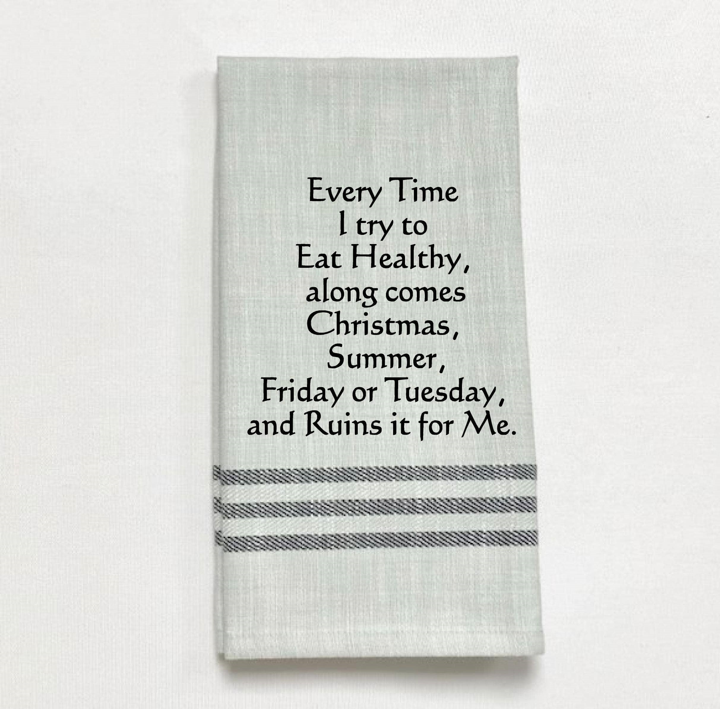 This fun kitchen tea towel is 100% cotton twill and machine washable. Perfect for any occasion, this 16x25 inch towel will keep you laughing with its playful reminder to stay on track. Just try avoiding those taco Tuesdays!