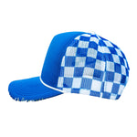 Upgrade your hat game with this trendy Royal Blue & White Checkered Trucker Hat! Perfect for customizing with patches, this 5 panel foam cap with mesh back and cotton sweatband keeps you cool. Its high 4in crown fits adult sizes 6-7 1/2 or 20in-23 1/2in circumference.
