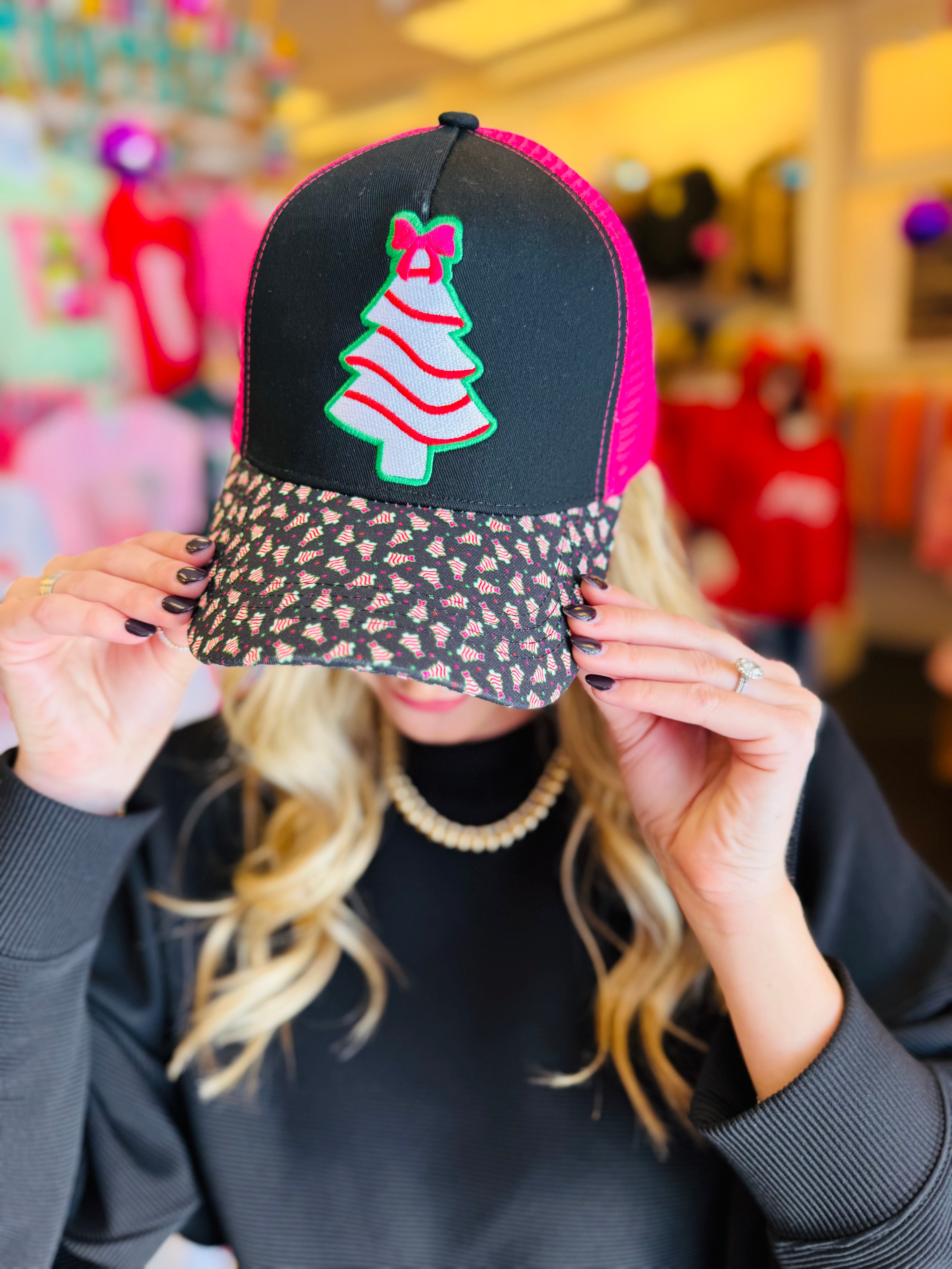 Add a playful pop of holiday cheer to your look with our Bow Christmas Treat Trucker Hat, the ultimate festive accessory for the season! This trendy holiday trucker hat features a black canvas front detailed with embroidered Christmas treats and a printed bill showcasing a colorful mix of holiday goodies. The pink mesh back adds a fun, feminine touch while keeping you cool and comfortable all day long. Designed with an adjustable snapback closure, this hat ensures the perfect fit for all your Christmas errands, parties, or cozy coffee runs. Whether you’re treating yourself or gifting the ultimate holiday hat lover, this Christmas treat trucker delivers a stylish blend of comfort, personality, and festive flair.