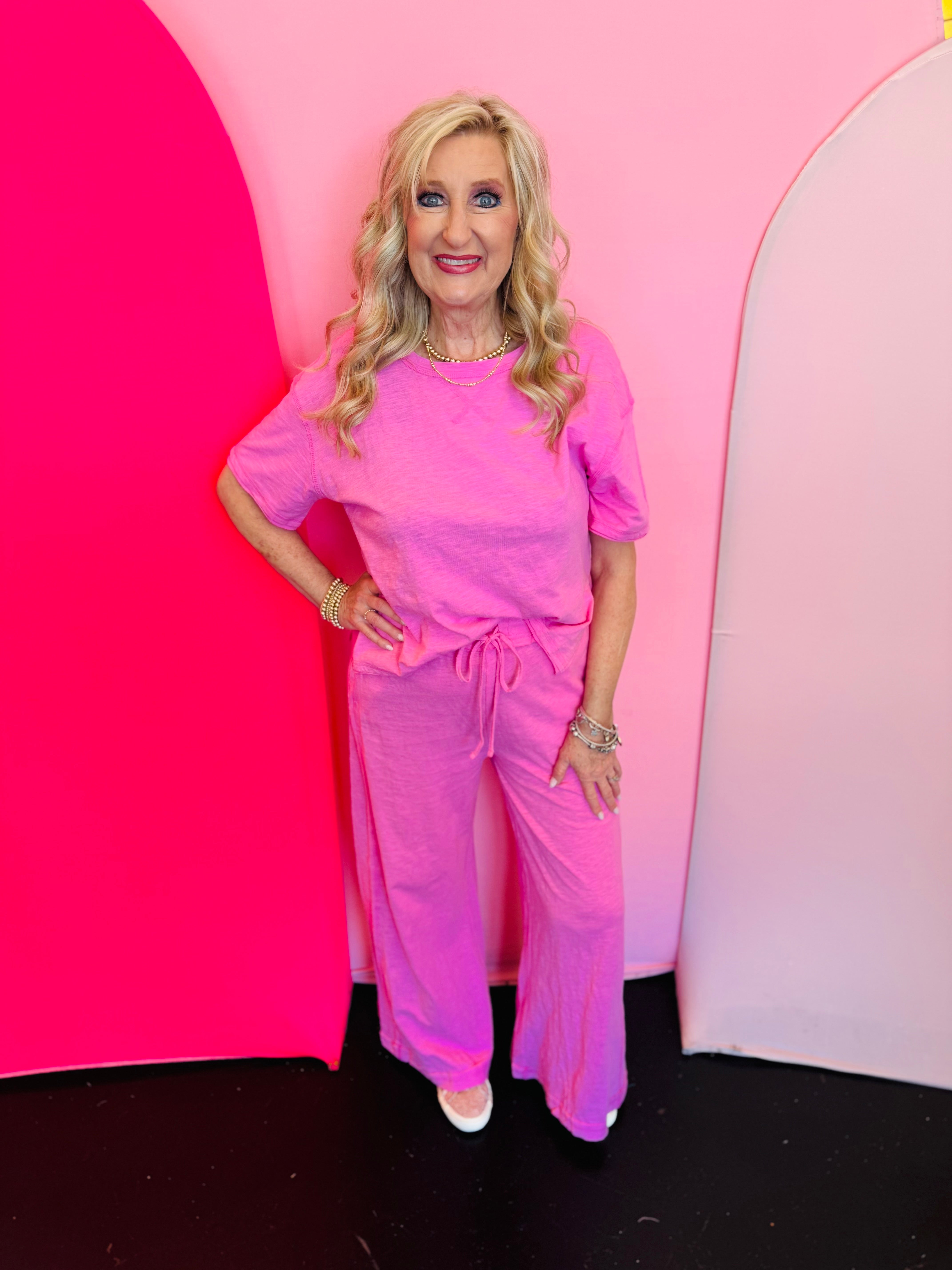 Looking for the perfect Candy Pink Tee Pant Set that’s equal parts comfy and cute? This is your new go-to.