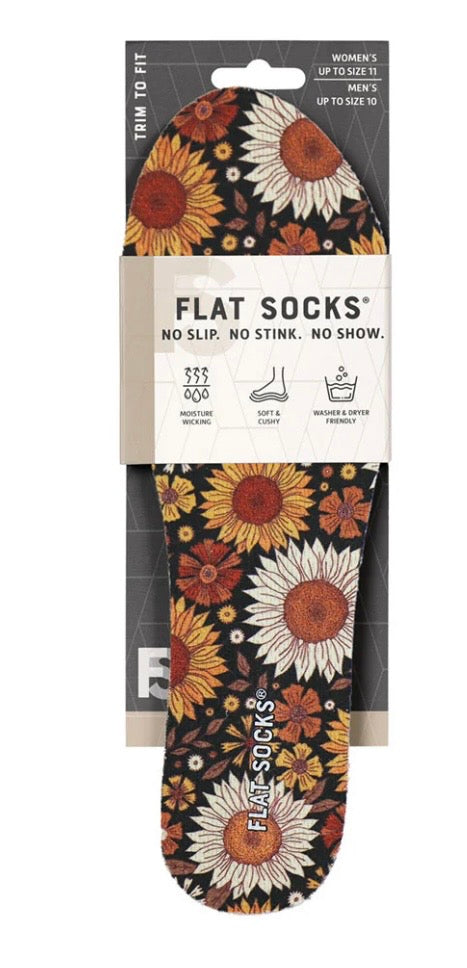 Who says fall is only for pumpkin spice? Embrace the cozy charm of the season with Harvest Hues FLAT SOCKS®, featuring warm, autumn-inspired sunflower blooms that bring instant fall flair to every step. These no-show, non-slip inserts deliver the comfort of socks without the bulk, slip, or stink. Made from 100% hypoallergenic cotton, they’re soft, breathable, and gentle on skin — keeping your feet fresh, dry, and cozy all day long. Perfect for pumpkin patch strolls, cozy coffee runs, or crunching through fallen leaves, Harvest Hues FLAT SOCKS® let you enjoy barefoot freedom with sunflower-bright style and unbeatable comfort.