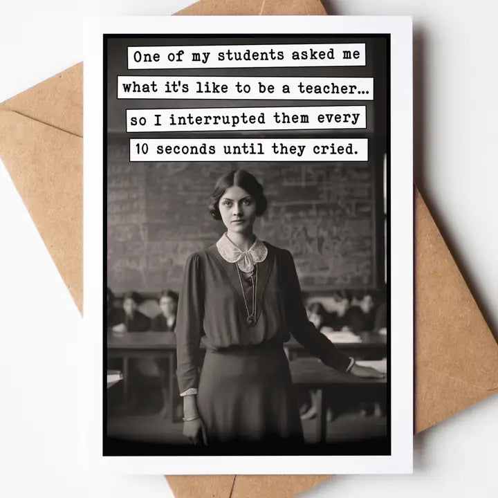 Make your favorite teacher's day with our What It's Like To Be A Teacher Greeting Card! Featuring a unique 5x7 inch card and self-sealing envelope, this high-quality set is crafted in the USA with a humorous touch. Perfect for sending well wishes that will make them smile!