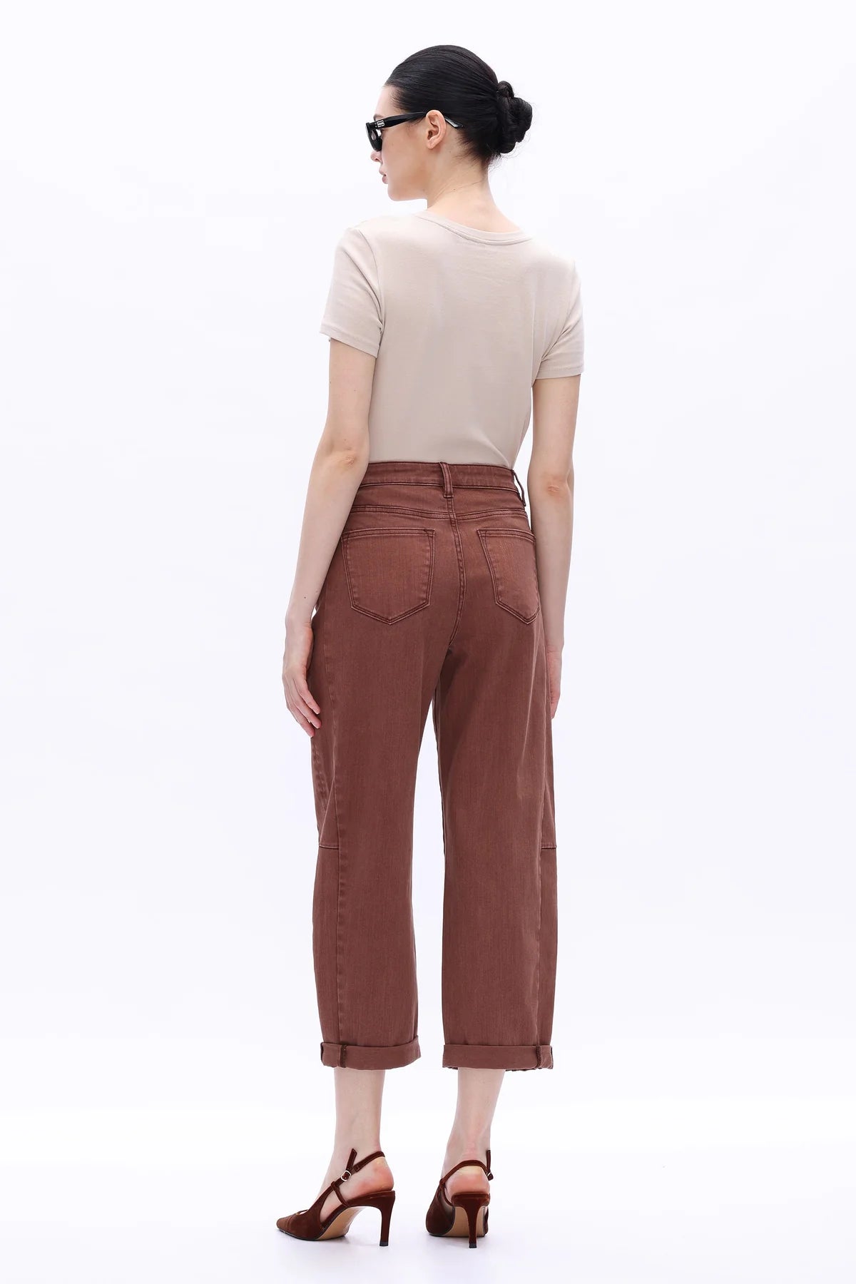 Meet your new statement denim—stylish, modern, and effortlessly flattering. The Espresso High Rise Barrel Rolled Jeans feature a sculpting high-rise waist and a relaxed barrel-shaped leg that tapers slightly for a chic, contemporary silhouette. The warm brown wash adds a fresh twist to everyday denim, while the rolled cuff and subtle side seams give these jeans their signature boutique look.