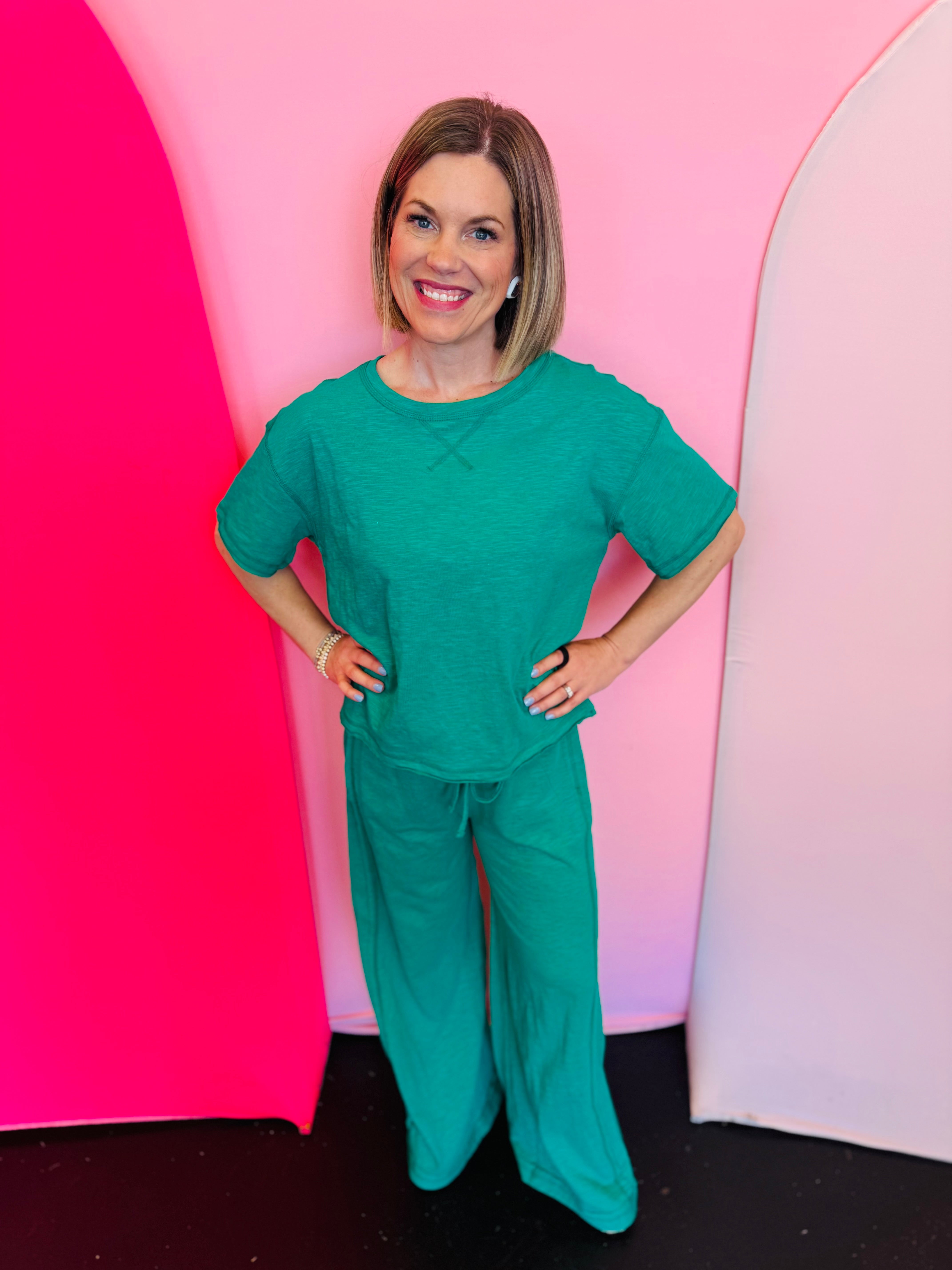Looking for the perfect Kelly Green Tee Pant Set that’s bold, comfy, and effortlessly stylish? This is your new favorite.