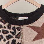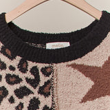 Leopard Star Pattern Round Neck Sweater