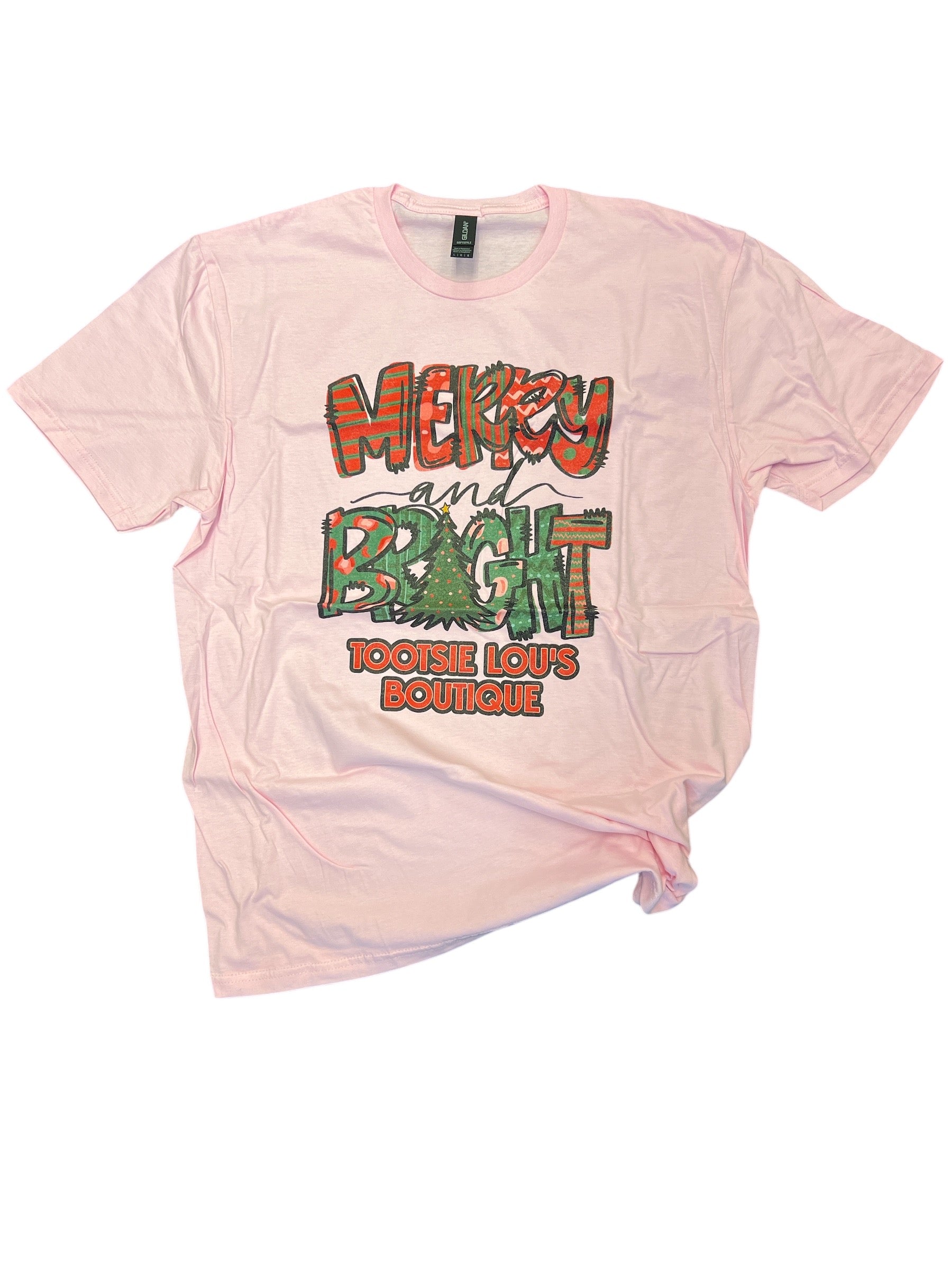 Be merry and bright in this playful Pink Tee! With a festive twist, this Merry & Bright Tootsie Loo Tee features a vibrant Christmas design. Spread holiday cheer with this super cute and fun shirt. It's the perfect addition to any wardrobe. (Ho ho ho-t t-shirt!)