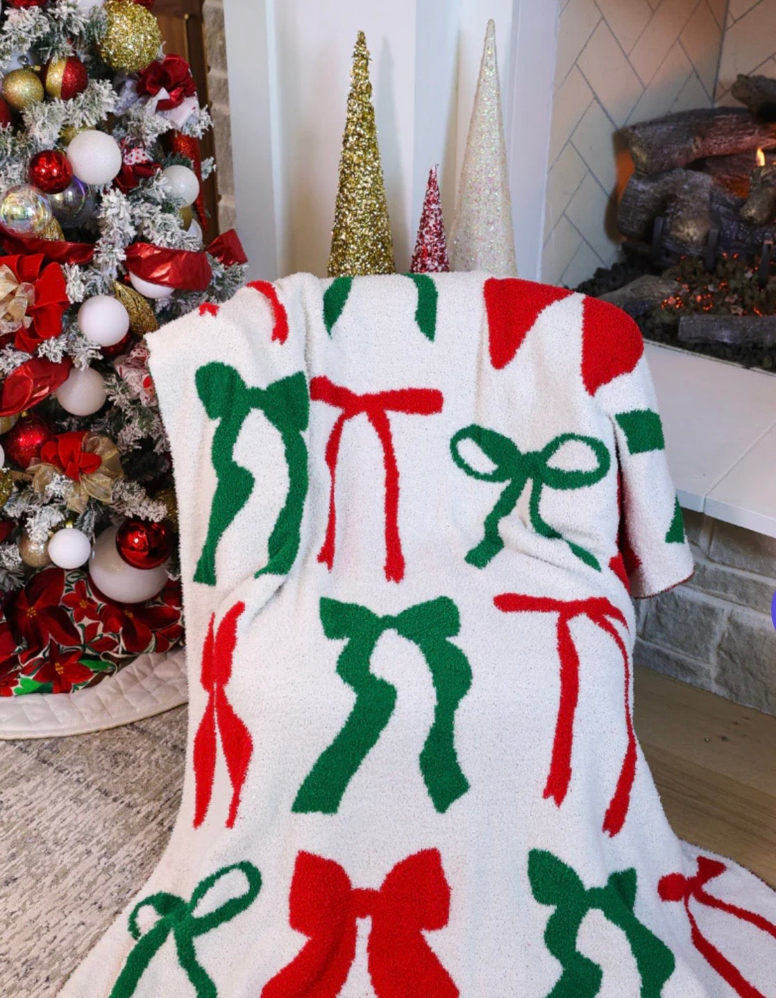 Wrap yourself in festive elegance with the Midnight Bow Christmas Edition Blanket — a seasonal twist on our beloved Jess Lea classic. This soft, cozy blanket features the signature bow print now reimagined in vibrant red and green, blending timeless charm with holiday cheer. The playful design makes it perfect for cozying up by the fire, decorating your couch, or gifting to someone special this season. Both stylish and functional, it adds the perfect pop of festive flair to your winter home décor.