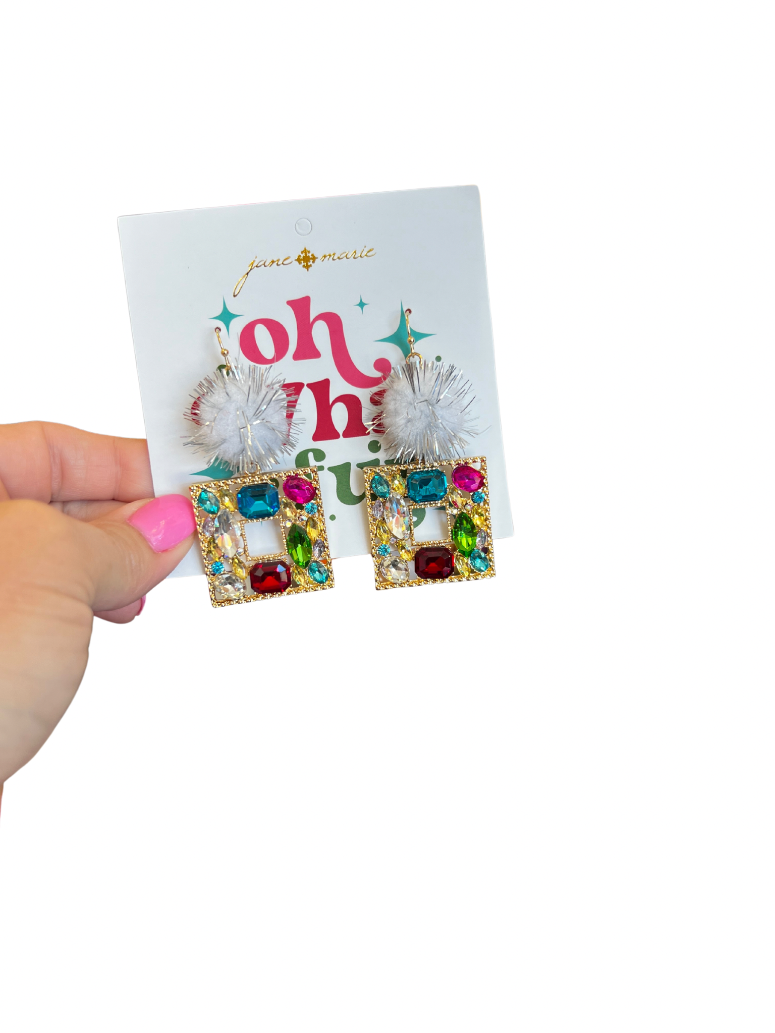 Add some sparkle to your holiday look with our Multi Crystal Embellished Square Earrings! These gorgeous earrings feature white crystals with silver tinsel accents, perfect for adding a festive touch to any outfit. Give the gift of glitz this Christmas (or treat yourself)!