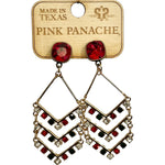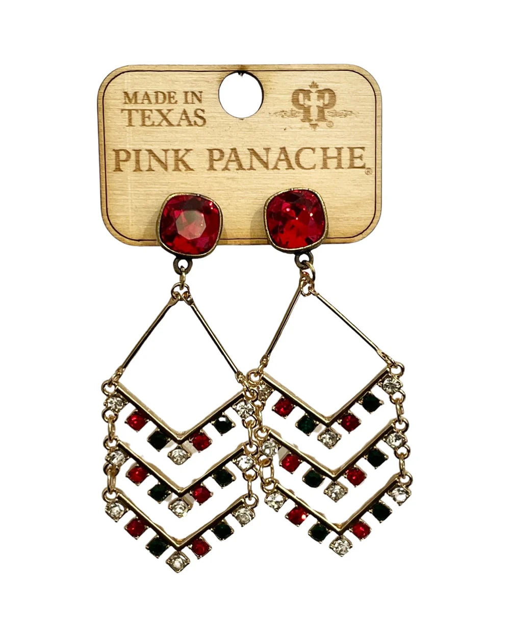 Elevate your style with our Red & Green Dangle Earrings. Featuring a stunning combination of red, green, and clear rhinestones, these earrings will add a touch of festivity to any outfit. The dangle design and gold metal details add a luxurious touch, while the striking red pendant adds a bold pop of color.