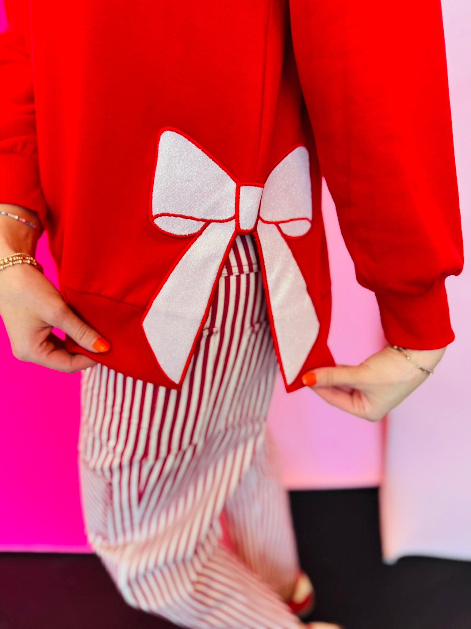 Embrace festive charm with our Red Merry Bow Sweatshirt! This vibrant red sweatshirt makes a cheerful statement, featuring bold white chenille lettering that spells out "Merry" across the front. The soft, textured lettering creates an eye-catching focal point, while playful bow accents on the sides add a delightful and unique touch. This cozy top ensures both warmth and a flattering fit for all your seasonal celebrations. It’s perfect for casual holiday gatherings or infusing your everyday style with joyous spirit.