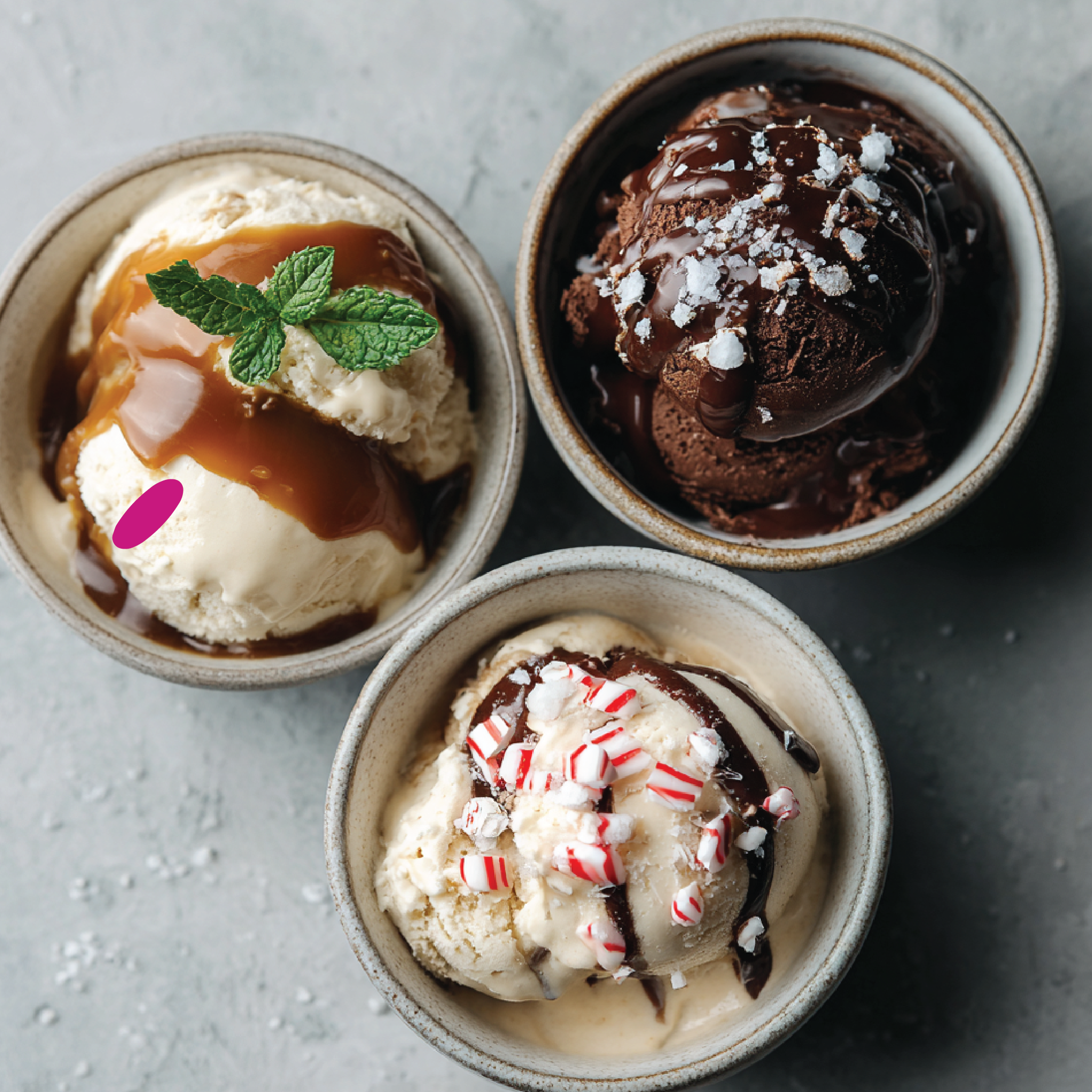 Trio includes Peppermint Mocha, Salted Caramel, and Double Fudge