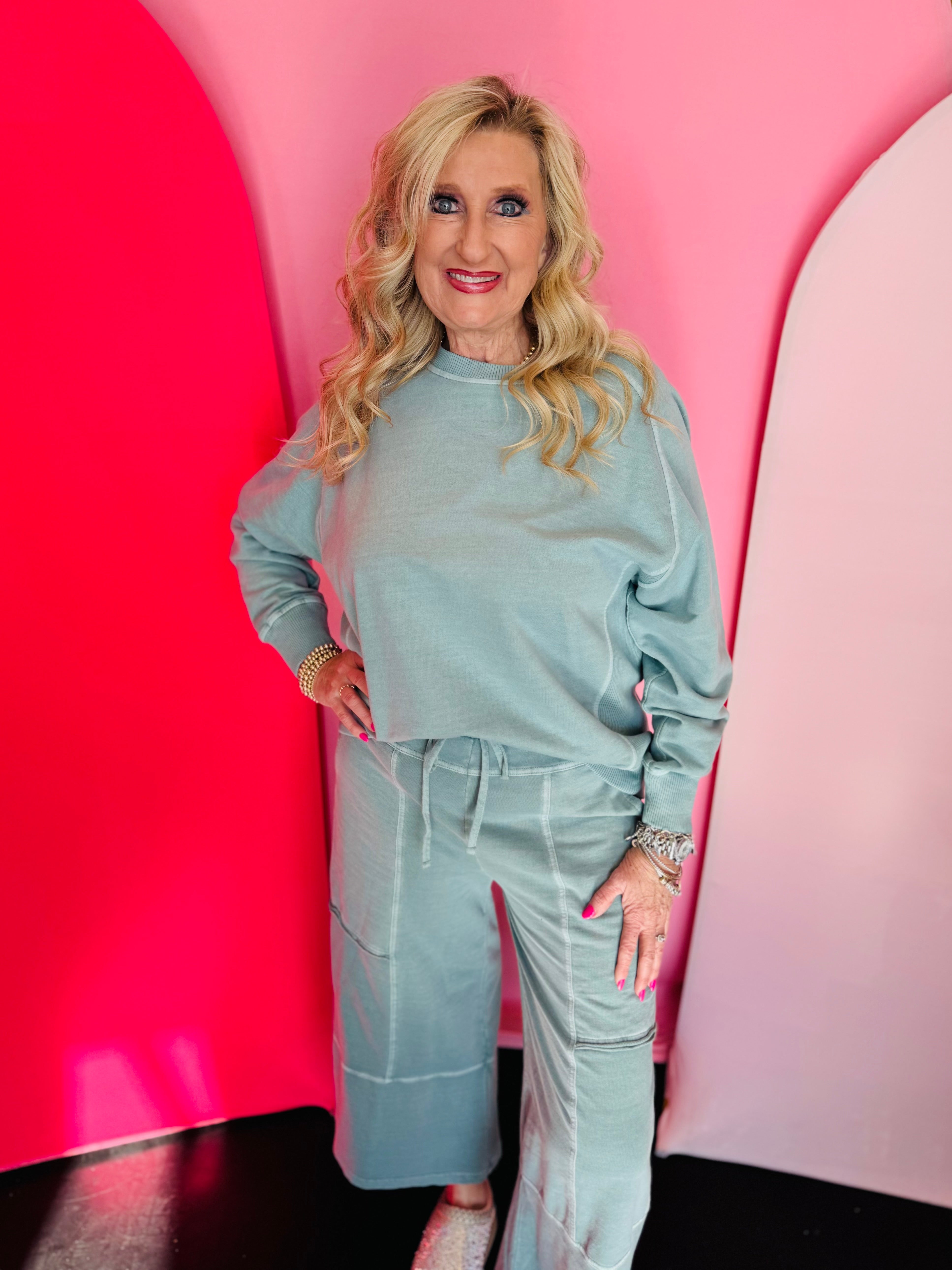 Relaxed, timeless, and effortlessly stylish, the Calm & Cozy Ash Blue Top is a go-to essential for everyday comfort with a boutique-quality finish. Crafted from 100% cotton French terry, this pullover is pigment dyed and enzyme washed to create a beautifully soft, lived-in feel that only gets better with wear. The ash blue tone brings a calm, coastal-inspired vibe that pairs seamlessly with denim, joggers, or leggings.