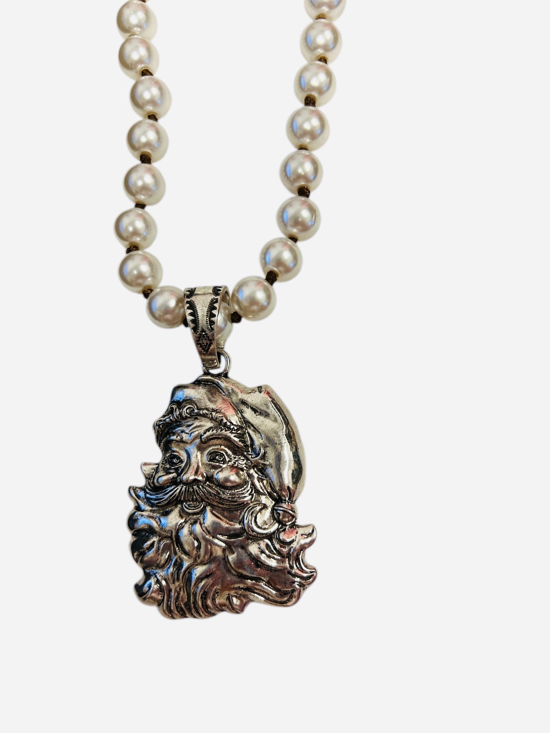Add a touch of nostalgic holiday magic to your jewelry collection with the Vintage Santa Pearl Charm Necklace, a standout accessory that blends timeless elegance with festive charm. This eye-catching piece features a strand of glossy ivory pearls, each one offering a soft, luminous glow that instantly elevates any outfit. At the center hangs a beautifully detailed vintage-inspired Santa pendant, crafted with classic Christmas character and storybook appeal. The intricate artwork and warm, nostalgic tones make the pendant feel like it was pulled straight from a cherished holiday tale.